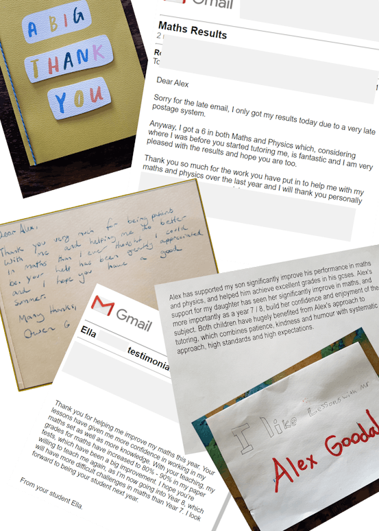 "...hugely benefited from Alex's approach to tutoring, which combines patience, kindness and humour with a systematic approach, high standards and high expectations..."